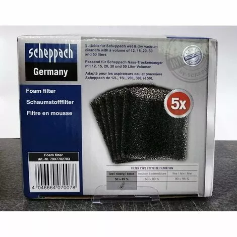 Filtre en mousse compatible avec les modèles de aspirateur ASP Scheppach: