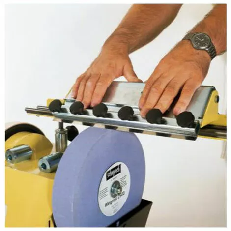 - Un dispositif de maintien pour tranchants droits, fers plats et ciseaux à bois fait partie de la livraison