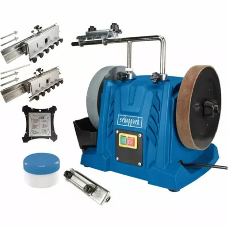 Ce pack SCHEPPACH comprenant une affuteuse à eau 250mm et ses accessoires : ces dispositifs 320-380, une pâte d’affilage et un guide d’angle est prêt à l’emploi pour vos travaux d’affutage. En effet, l’association de cette affuteuse à eau avec le dispositif 320-380vous permettra d’aiguiser et d’entretenirvos fers de dégauchisseuse (maximum 380 mm) à la perfections. De plus, vous pouvez retrouver avec votre affûteuse, un dispositif 70 universel qui est compatible avec de multiples produits, un positionneur d’angle et une pâte d’affilage qui vous permettra de parfaire l’affûtage en polissant parfaitement le tranchant de vos outils.