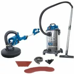 Le pack SCHEPPACH regroupe une ponceuseàmurs et plafond de 710W et un aspirateur eau et poussière, 1400W de 30 L.Cette association de produits génère une synergie où la ponceuse vous permettra de poncer les murs et les plafonds et par la suite vous pourrez aspirer la poussière générée par les travaux de ponçage grâce à votre aspirateur à eau et poussière. De plus, cette ponceuse possède une tête orientable de de 0° à 90°, le ponçage des plafonds peut être réalisé directement depuis le sol et la tête triangulaire permet de réaliser le ponçage des angles et des coins sans peine. Enfin grâce à sa grande cuve de 30 L en inox, cet aspirateur ne recule devant aucune tâche et s’avèrera être très utile pour entretenir votre atelier et pour tous vos chantiers.