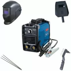 Pack SCHEPPACH comprenant un poste à souder et un casque soudure AWH500BL, prêt à l’emploi, l’association de ces produits vous permettront de souder efficacement. En effet, vous pourrez effectuer des petits travaux de soudure occasionnels en toute sécurité, grâce à sa puissance réglable, cet outil s’adapte à toutes les situation. De plus, la sonde de détection intégrée au casque détecte immédiatement l’accroissement de lumière et les étincelles, il obscurcit automatiquement la fenêtre de vision en l’espace de quelques millisecondes sans nécessité d’arrêter de travailler.