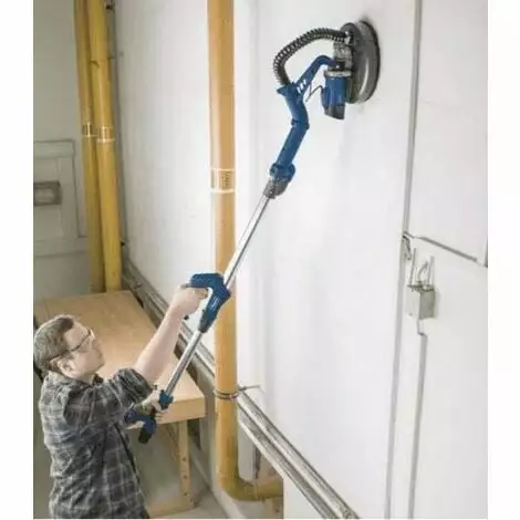 L’outil pratique et léger avec tige télescopique et tête de ponçage inclinable simplifie le travail au-dessus de la tête.