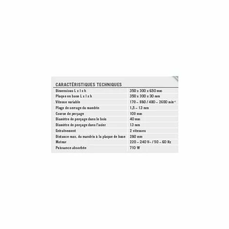 Vitesse variable : 170 – 880 / 490 – 2600 min-1